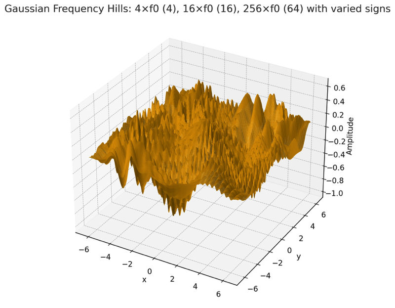 3D visualization of a single scalar field with overlapping waves of different frequencies