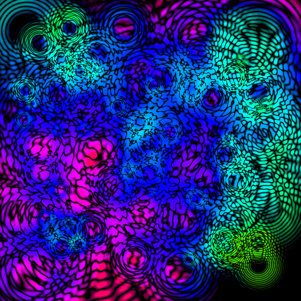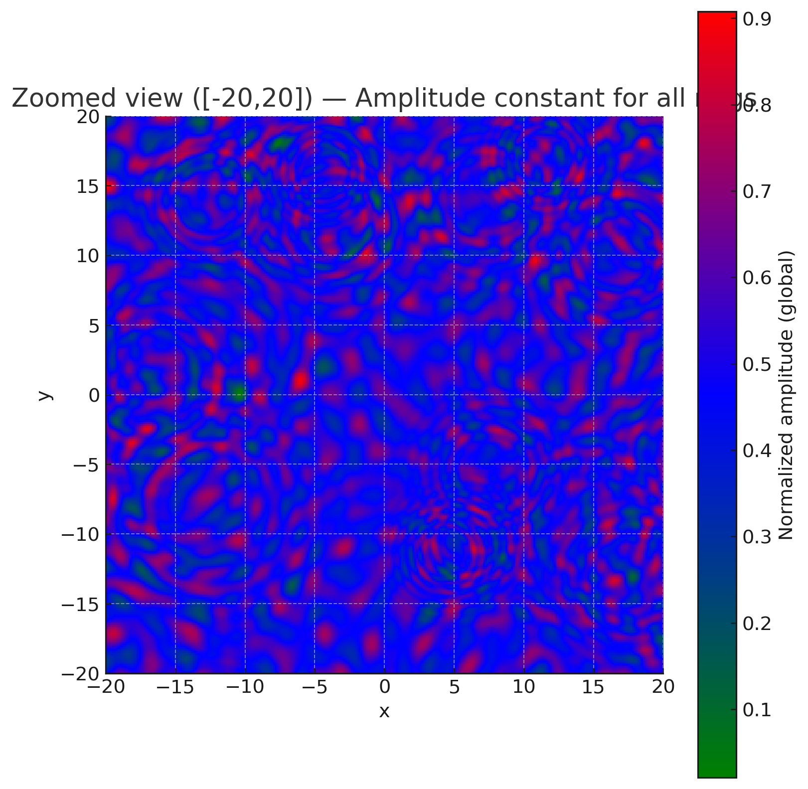 Image: This image shows a planar intersection of the LEDO waves within the rotation plane. We see different Rotons emitting radial waves into the LEDO-Field.