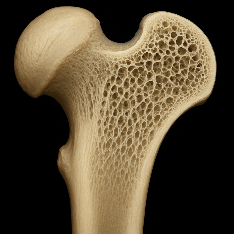 - Dynamic adaptability: According to Wolff’s law, spongiosa adapts to real stress — it becomes denser where loads are high and is reduced where loads are low.