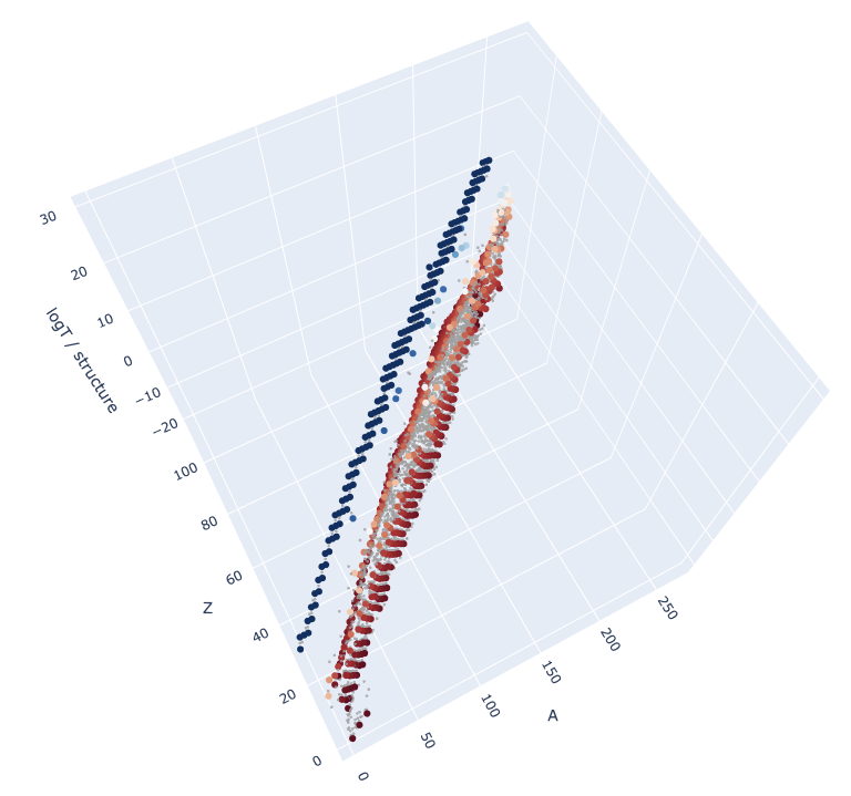 Isotope decay stability (log T) per Mass (A) and Charge (Z)